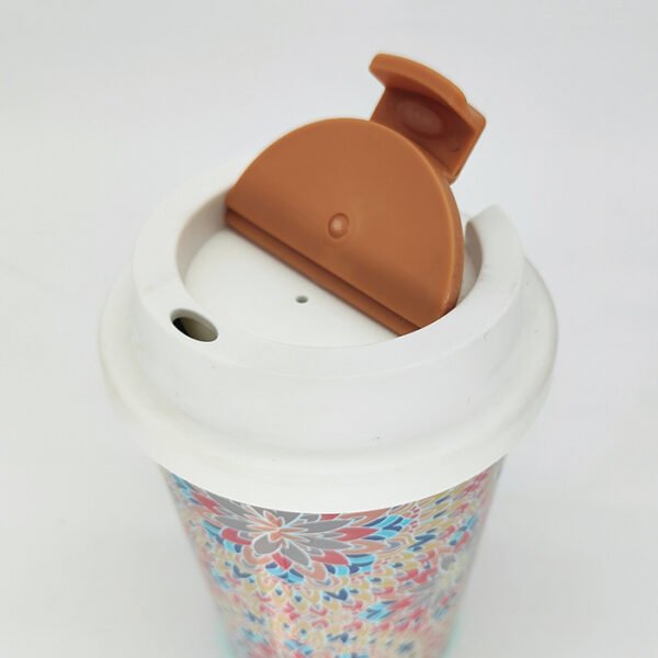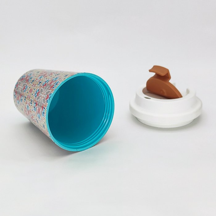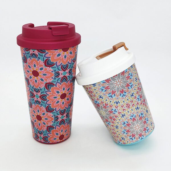 The tapered shape makes it easy for us to take on the go and the twisted lid prevents any spills. We can print beautiful patterns onto this mug to make it useful and stylish.