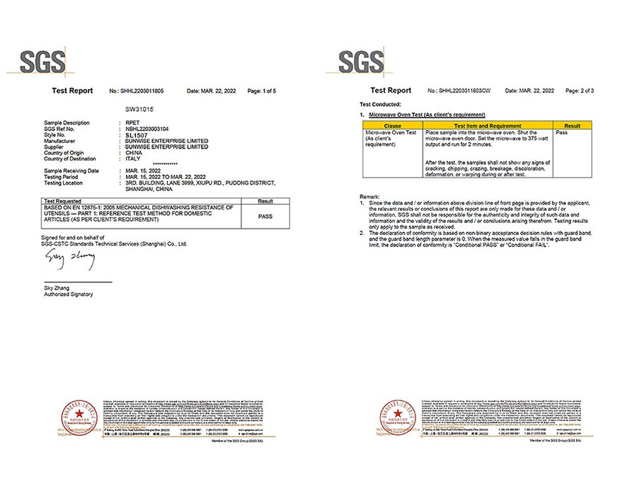 • RPET tableware is free from harmful chemicals, complying with testing requirements from the European Union (EU), the U.S. Food and Drug Administration (FDA), Germany’s LFGB, and other relevant standards. It meets the regulations for food contact safety, ensuring that the use of RPET products is harmless to our human body.