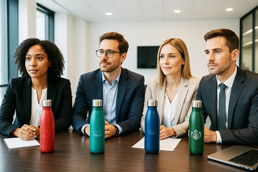 Custom logo water bottles in meeting